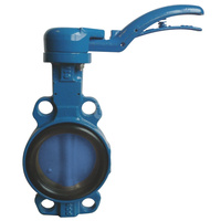 Przepustnica bezkołnierzowa SYLAX z napędem ręcznym dźwigniowym, dysk: GGG40 epoksyd., wykładzina: NBR, korpus: GGG40 epoksyd., Pnom 2,0 MPa, tmax=85 st.C DN50