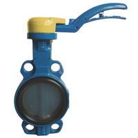 Przepustnica bezkołnierzowa SYLAX-Uranie z napędem ręcznym dźwigniowym, dysk: GGG40 epoksydowany, wykładzina: EPDM, korpus: GG25 epoksyd., Pnom 1,6 MPa, tmax=120 st.C 50