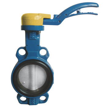 Przepustnica bezkołnierzowa SYLAX z napędem ręcznym dźwigniowym, dysk: AISI316, wykładzina: silikon, korpus: GGG40 epoksyd., Pnom 1,0 MPa, tmax=200 st.C DN 65