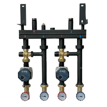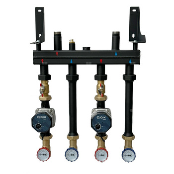 Rozdzielacz do ogrzewania podłogowego QIK STANDARD II 2-obieg. inox GW 1'' x GZ 3/4'' + przepływomierz