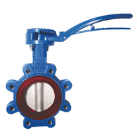 Przepustnica z otworami gwintowanymi SYLAX z napędem ręcznym dźwigniowym, dysk: AISI316, wykładzina: NBR, korpus: GGG40 epoksyd., Pnom 1,6 MPa, tmax=85 st.C DN32