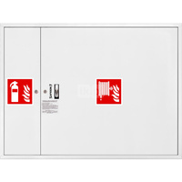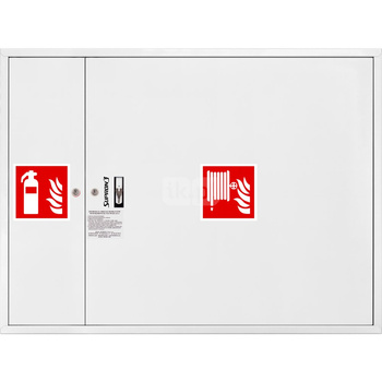 Hydrant DN 33 wnękowy z miejscem na gaśnice pod zwijadłem, wąż 30 m, ocynk fasada, zamek patent, RAL 9003