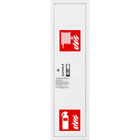Hydrant DN 52 zawieszany boczny z koszem, z miejscem na gaśnice, wąż 20 m, zamek patent, RAL 3000 lewy